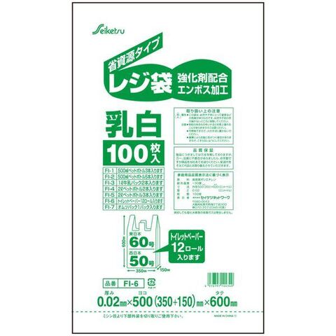 4976797144349 FI-6 レジ袋50号 乳白 0.02×500×600mm 100枚入