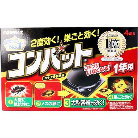 ・使用しないコンバットは袋に戻し、テープなどで密封して保管してください。1個でもしっかり効く、守備範囲の広いコンバット!