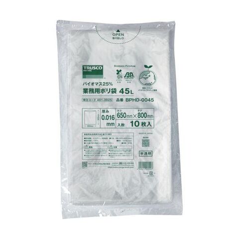 TRUSCO BPHD-0045 バイオマス25%ポリ袋 0.016x650x800mm 45L用・透明 10枚入 BPHD0045