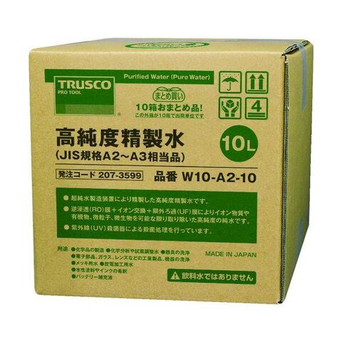 TRUSCO W10-A2-10 高純度精製水 10L コック無 JIS規格A2~3相当品 10個お纏め品 W10A210