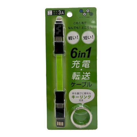 ●これは便利!たったひとつのケーブルで様々な機器を充電・データ転送もOKの6in1ケーブル。●ケーブルの両端に付いたコネクタは挿す向きで様々なデバイスに対応。入力USB-AとUSB-C、出力はLightning、USB-C、microUSBに対応6パターンの組み合わせで色々な機器の充電やデータ転送に対応します。●優れた柔軟性のコードは折りたたむことができ、付属キーリングに引っ掛ければそのままキーホルダーにつけて持ち運べるユニークなデザイン。ポップな6色展開です。