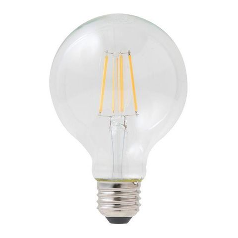 クリアフィラメントで、電球色の光がキラキラと下方まで照射できます。40W相当、外径80mmのランプ。