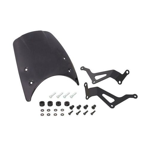 フロント周りを引き締めるポリカーボネイト製の小型バイザー。※バイザー本体の材質特性、また製造工程上で多少のキズ、汚れ等があります。予めご了承の上、お買い求めください。