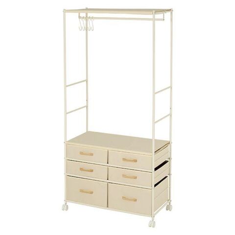 ●シンプルなデザインに引出し収納も兼ね備えたハンガーラック。キャスター付きで掃除や移動にも便利