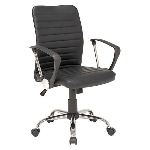 ●シンプルなデザインのオフィスチェア。PVC生地でお手入れが簡単。