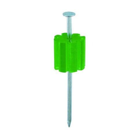 ●仮釘は細く、樹脂の部分が表面にでている状態まで打ち込むので、軽量物の仮止めとしてご使用下さい。