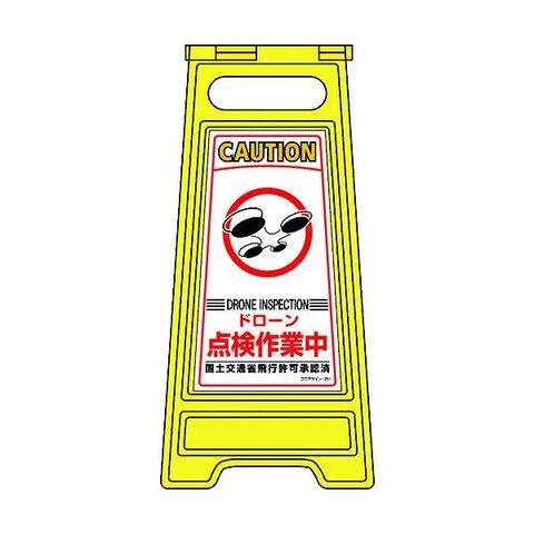 緑十字 337251 フロアサインスタンド ドローン点検作業中 フロアサイン-251 600×280mm 両面表示