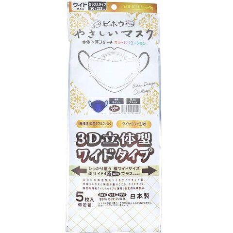 4582522904203 やさしいマスク 3D立体型 ワイドサイズ ネイビー×ブラック 個包装 5枚入【キャンセル不可】