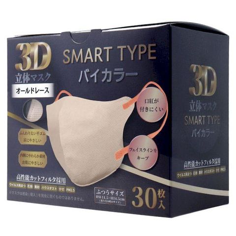4589596694290 3D立体マスク スマートタイプ バイカラー オールドレース ふつうサイズ 30枚入【キャンセル不可】