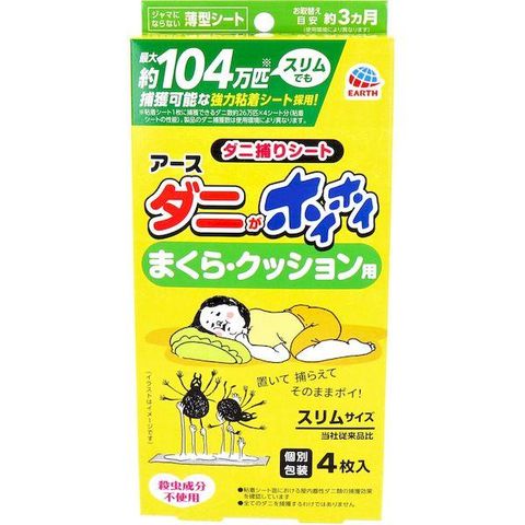 4901080052216 アース ダニがホイホイ ダニ捕りシート まくら・クッション用 個別包装 4枚入【キャンセル不可】