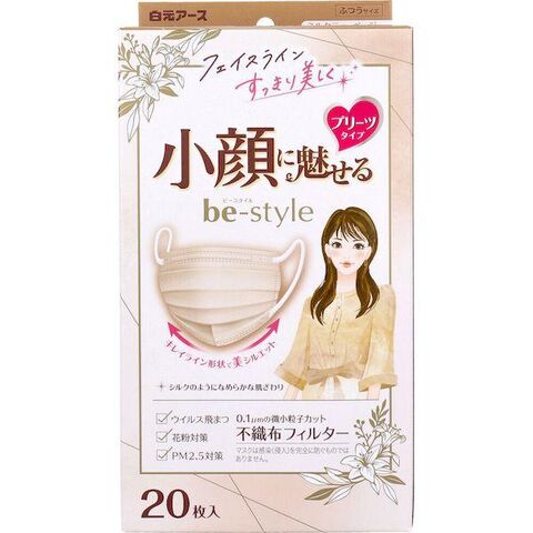 4902407582454 ビースタイル 小顔に魅せる プリーツタイプ ふつうサイズ ミルクティーベージュ 20枚入【キャンセル不可】