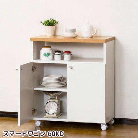 キッチンワゴン キャスター付き 両面対応収納スペース付き ダイニングワゴン 日本製 代金引換不可※ワゴン以外の小物類は商品に含まれません