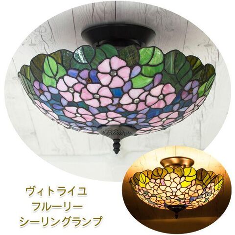 シーリングライト フルーリー おしゃれなステンドグラス仕様 天井照明 アンティーク 西洋風 シーリングランプ クラシック調 レトロ エレガント リビング ダイニング 居間 ベッドルーム 寝室 代引不可