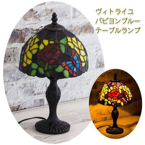 クロシオ 4954877307846 直送 代引不可 テーブルランプ パピヨンブルー おしゃれなステンドグラス仕様