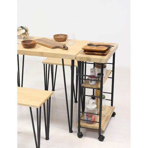 リビングやダイニングで活躍するスリムで場所を取らないワゴン。●天厚=約3.8cm、その他板厚=約1.8cm●可動棚1枚(5ヶ所移動)/材質:天板・棚板:合成樹脂化粧繊維板、/脚:スチール/生産国・使用:中国・組立式キッチン収納・スチール・スタイリッシュ