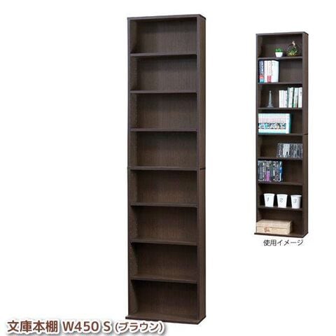 文庫本棚 薄型 本体奥行17cm 幅45cm 棚板6枚付き 8段 ブラウン ディスプレイラック 代金引換不可