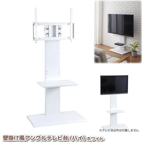 壁寄せテレビスタンド 32型~60型対応 壁掛け風テレビ台 アングル調整能付き ハイタイプ ホワイト 壁寄せTV台 角度調整 首振り スイング 代金引換不可