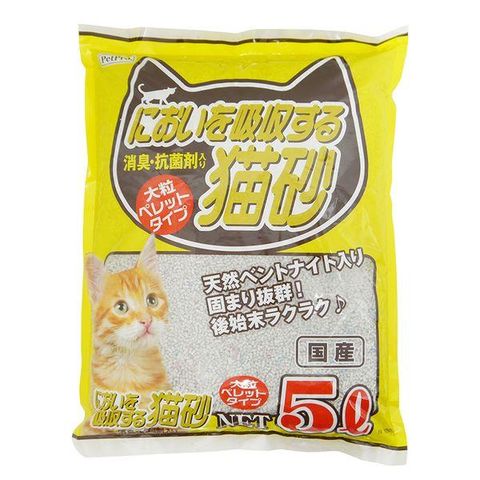 ペットプロジャパン 4981528731026 ペットプロ においを吸収する猫砂 5L天然ベントナイト入り固まり抜群!後始末ラクラク♪おしっこの吸収力に優れがっちり小さく固まります。固まった部分だけ処理できて大変便利です。ブルーの粒がイヤな臭いを吸収分解、ピンクの粒は猫にも無害な抗菌剤です。国内最高級品質の宮城県蔵王産ベントナイトを使用。消臭効果も抜群です。[使用方法]