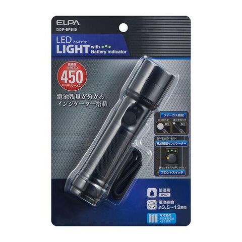 ●水まわりでも安心の防浸形(IPX7)●急な電池切れを防ぐ、電池残量インジケーター●握ったまま押しやすいフロントスイッチ●集光・散光機能付●光が均一で見やすい非球面レンズ搭載