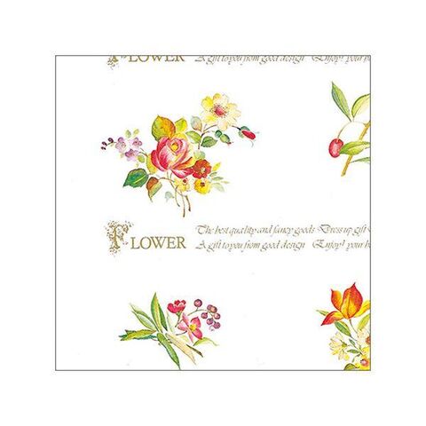 文字と花の組み合わせが上品なスタンダードデザインの包装紙です。