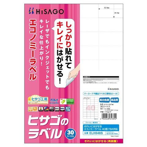 ヒサゴ ELH048S 再剥離Eラベル40面 30入