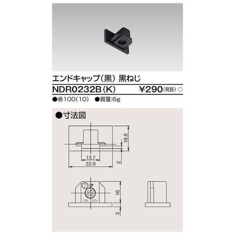 東芝ライテック TOSHIBA NDR0232B(K) 6形エンドキャップ黒ねじ