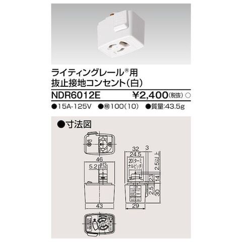 東芝ライテック TOSHIBA NDR6012E 6形抜止接地コンセント白
