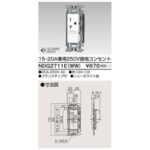 東芝ライテック TOSHIBA NDG2711E(WW) 15・20A250V接地コン