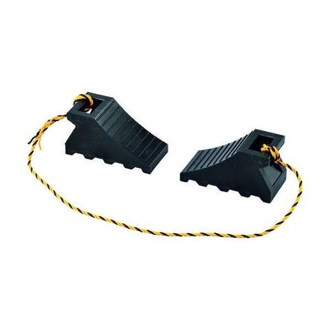 緑十字 120006 タイヤストッパー 輪止め 大型車用 10t車迄 黒 タイヤストッパー5BK 2個組 トラ柄ロープ1.2m連結 樹脂製
