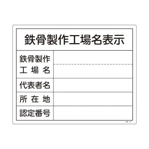 緑十字 130107 工事関係標識 法令許可票 鉄骨製作工場名表示 工事-107 400×500mm 塩ビ