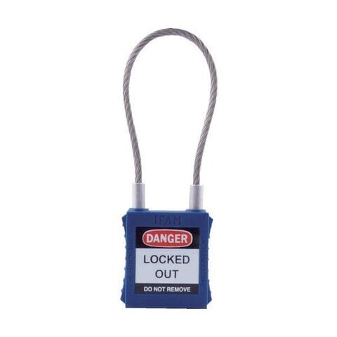 イファム 044951 ロックアウト用南京錠 スチールケーブル製シャックル 青