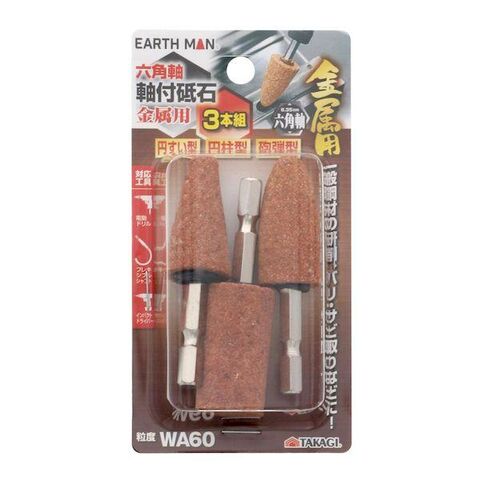 高儀 TAKAGI 1308283 EARTH MAN 六角軸軸付砥石 金属用 3本組