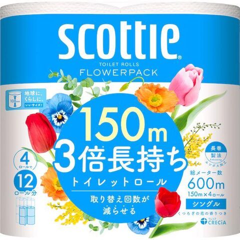 【同梱不可】【お一人さま1点限り】クレシア 4901750140045 スコッティフラワーパック3倍長持ちシングル150m 4ロールx12パック