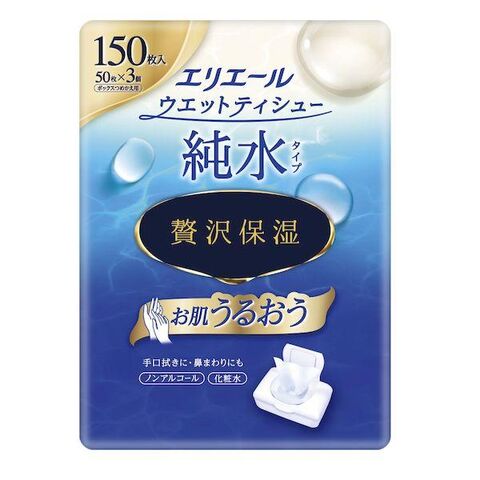【同梱不可】【お一人さま1点限り】大王製紙 4902011109450 エリエールウェットティシュー純水タイプ贅沢保湿ボックス詰め替え用50枚3個パックx12パック