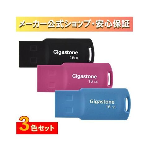 Gigastone GJU2-16GQ3PK USB2.0メモリースティック キャップレス U211 16GB 3色セット 5年保証 GJU216GQ3PK