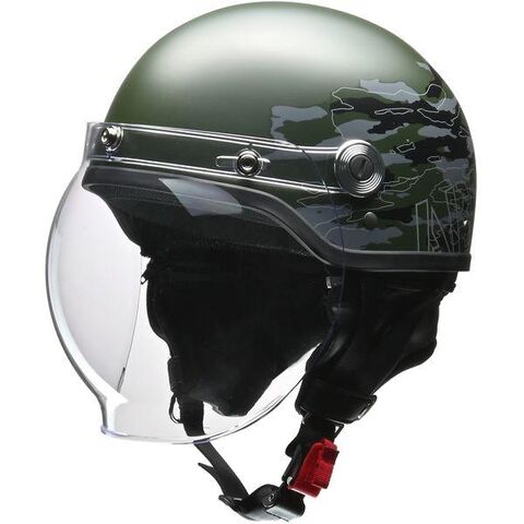 ハーフヘルメットに開閉式バブルシールドを装備したモデル。