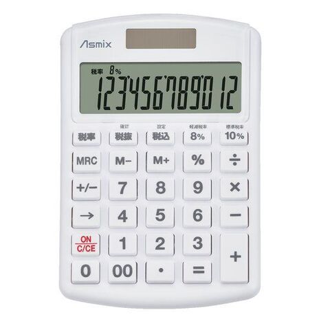 アスカ C1250W 軽減税率電卓 抗菌タイプ