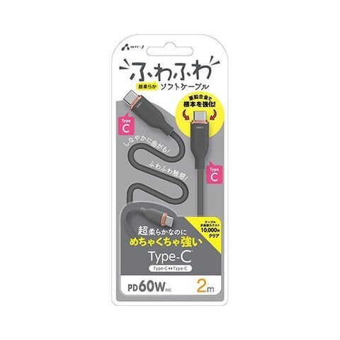 エアージェイ CCJ-AW2M GY 強化コネクターふわふわケーブルCtoC グレー CCJAW2MGY