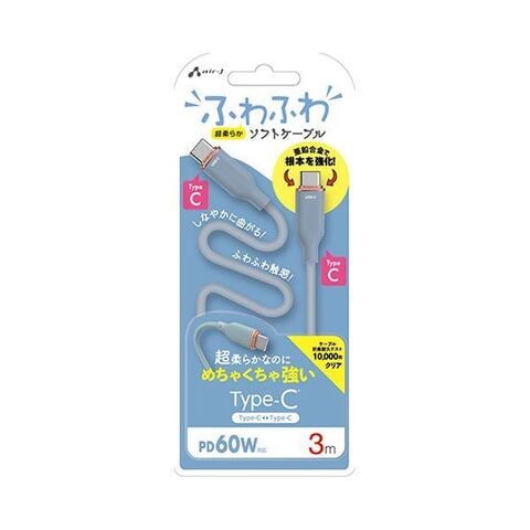 エアージェイ CCJ-AW3M BL 強化コネクターふわふわケーブルCtoC ブルー CCJAW3MBL