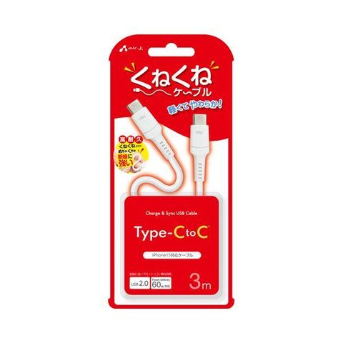 エアージェイ CCJ-WTC3M くねくねケーブルCtoC ホワイト CCJWTC3M