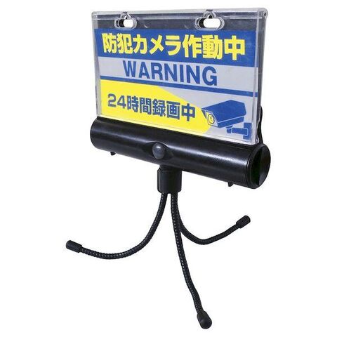●警告プレート(英語&日本語)とセンサーライトがドッキング。夜間はセンサーが侵入者を探知しLEDを点灯させます。●自由に曲がる三脚が付属しており、簡単に設置ができます。市販の結束バンドなどを利用して設置も可能。●防雨構造で屋外への設置OK。本商品はガレージや玄関前、敷地内通路など目立つ場所へ設置し、防犯カメラやダミーカメラと一緒にご使用いただくのがおすすめです。