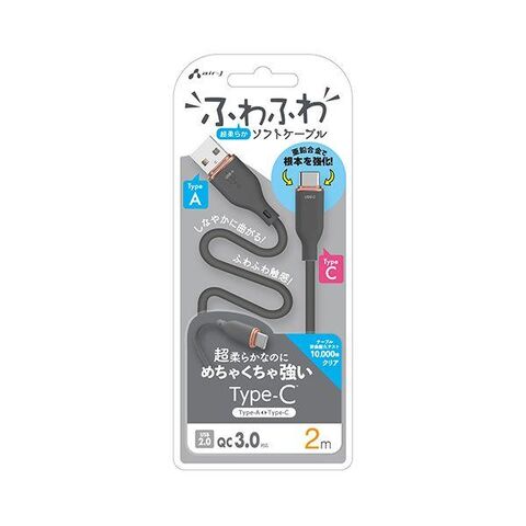 エアージェイ UCJ-AW2M GY 強化コネクターふわふわケーブルA to C UCJAW2MGY