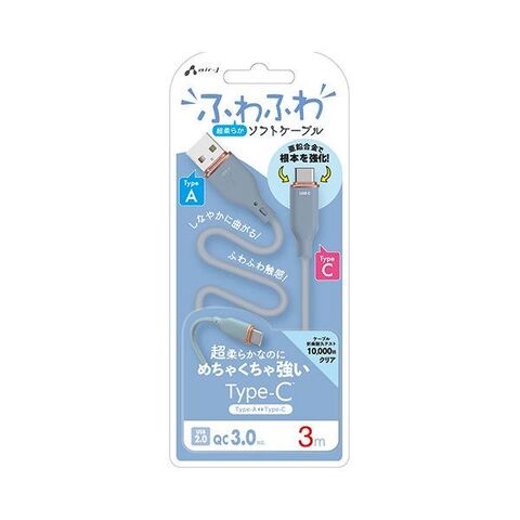 エアージェイ UCJ-AW3M BL 強化コネクターふわふわケーブルA to C UCJAW3MBL