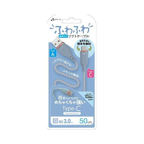 エアージェイ UCJ-AW50 BL 強化コネクターふわふわケーブルA to C UCJAW50BL