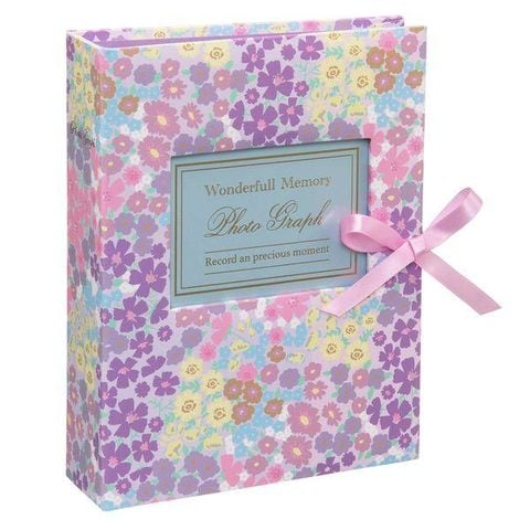●表紙はかわいい花柄のデザイン。表紙にフォトフレームが付いたアルバム。