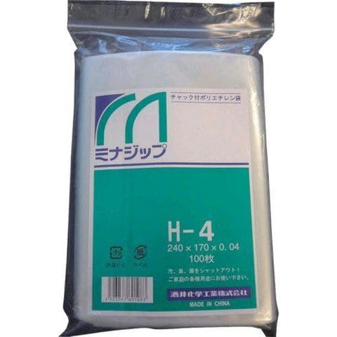ミナ MZH-4 チャック付ポリエチレン袋 「ミナジップ」 100マイイリ 240X170 MZH4 000-8281