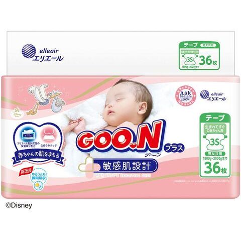 大王製紙 4902011842142 グーンプラス 敏感肌設計 生まれてすぐの赤ちゃん用 3S 36枚×6入