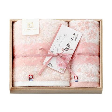 【個数:1個】B8092514 直送 代引不可 今治謹製 さくら紋織 フェイスタオル&ウォッシュタオル 木箱入