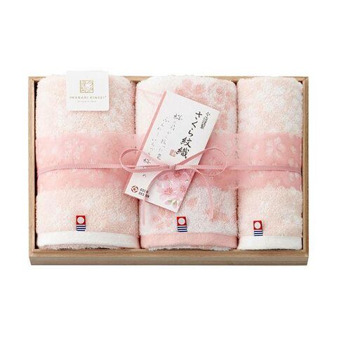 【個数:1個】B8118529 直送 代引不可 今治謹製 さくら紋織 フェイスタオル2P&ウォッシュタオル 木箱入のレビュー