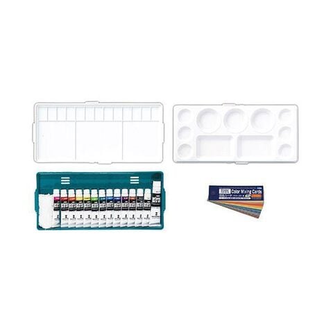 セット内容:13色11mlチューブ各1本+ホワイト20mlチューブ1本、混色カード ポスターカラー用120色、パレット2枚、ミニタオル付